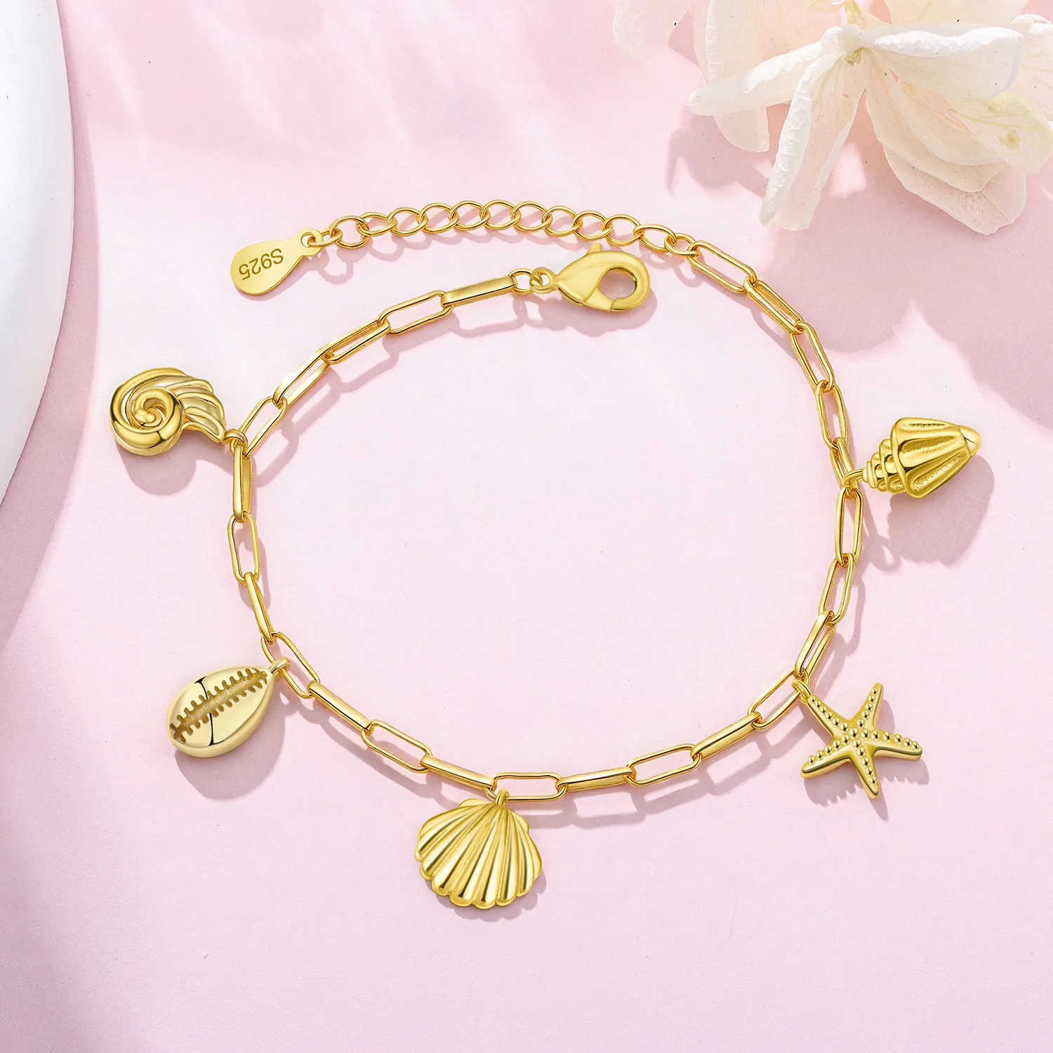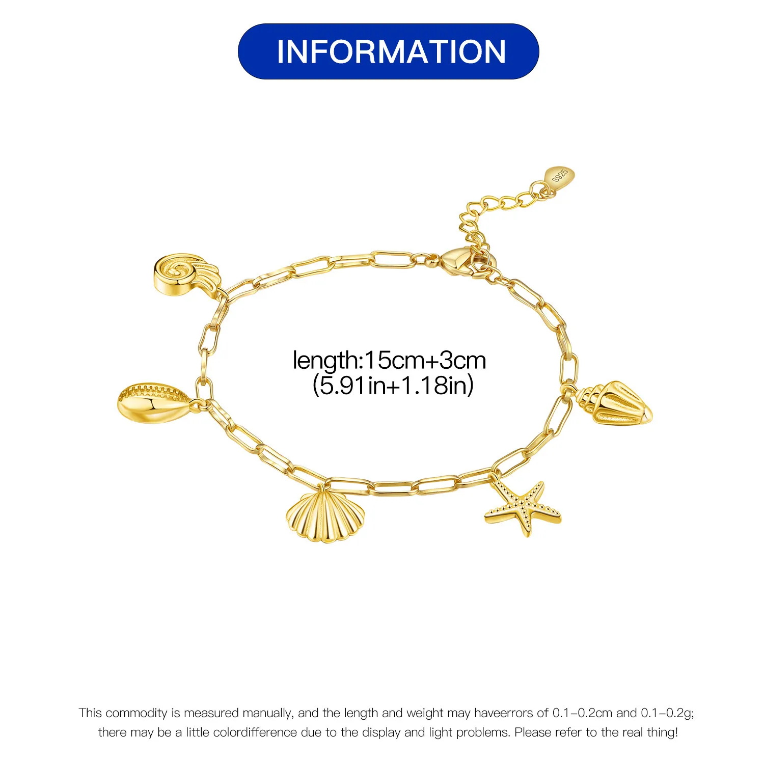 37 variantes New 925 Sterling Silver Golden Conch Shell Sea Star Ocean Bracelet Chain Link Women Bracelet Birthday Festival Jewelry Gifts k-pop universe Korean style K-pop inspired #nelvlpop